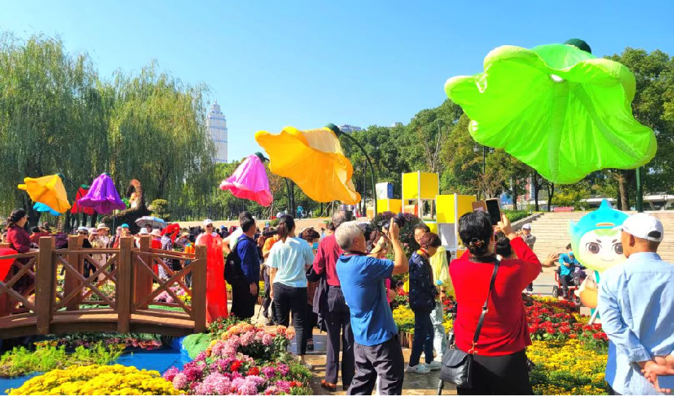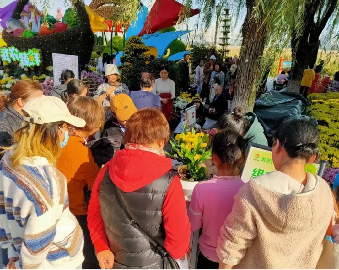 菊展以“江城百臻”“武農(nóng)臻鮮”品牌的宣傳和展示為主線貫穿整個(gè)活動(dòng)過程。通過開展農(nóng)產(chǎn)品試吃、掃碼撈魚、植物問診、菊藝插花、植物組盆表演、抖音直播線上賞花、掃碼關(guān)注送禮品等一系列推廣活動(dòng),提升了集團(tuán)品牌的影響力和美譽(yù)度,也為市民朋友們獻(xiàn)上了一場(chǎng)沉浸式賞花與群眾互動(dòng)相結(jié)合的文化盛宴。